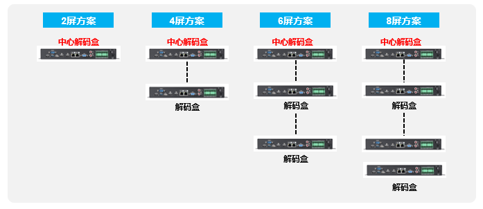 方案二:中心解码盒+普通解码盒低成本分布式拼接方案(10屏以内)