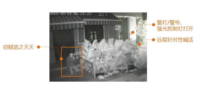 (4)2015年10月11日凌晨,一名窃贼试图闯入云南某别墅家中进行违法犯罪活动,该窃贼进入别墅院子刚靠近窗户,就触发了“墅安居”沿窗的设防摄像机布防区域,引起墅安居报警,成功驱离犯罪嫌疑人!