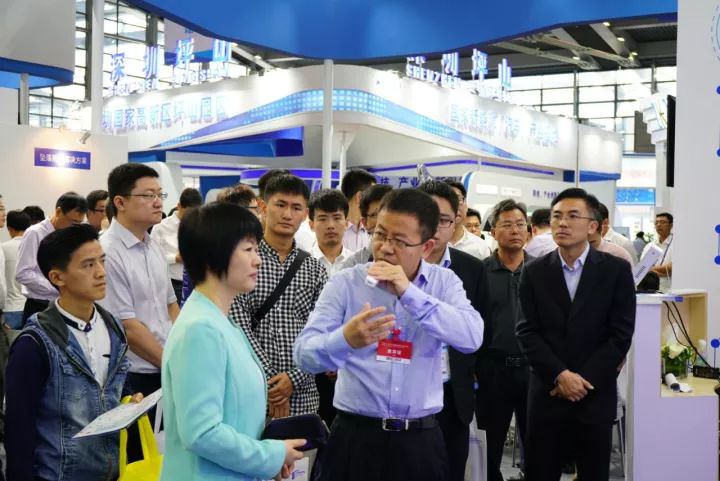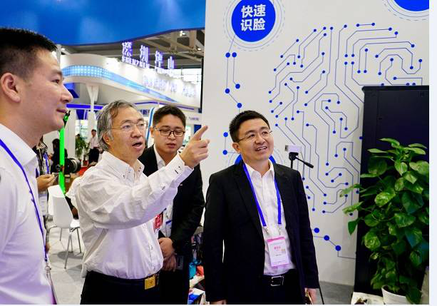 深圳市城市公共安全技术研究院副院长栗欣为深圳市国资委党委委员、副主任胡朝阳介绍中兴力维的产品技术