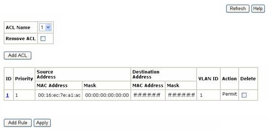 图四 通过WEB管理页面进行交换机ACL配置较为复杂
