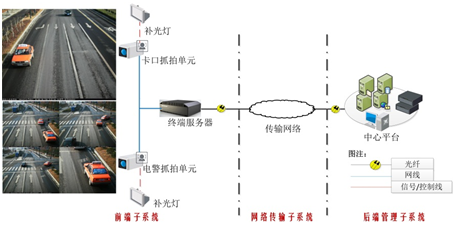 终端服务器接收来自卡口抓拍单元和电警抓拍单元的图片数据,对相同方向的数据进行实时的匹配对比,最终实现违法车辆正向图片、背向图片的关联、合成。