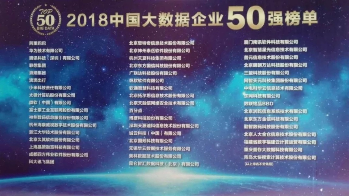 在未来的市场发展中,荣获“2018中国大数据企业50强”殊荣的企业,作为大数据产业发展的代表,将引领中国大数据产业的健康快速发展,成为我国从数据大国向数据强国迈进的强势先行军,为我国大数据产业的发展贡献力量。