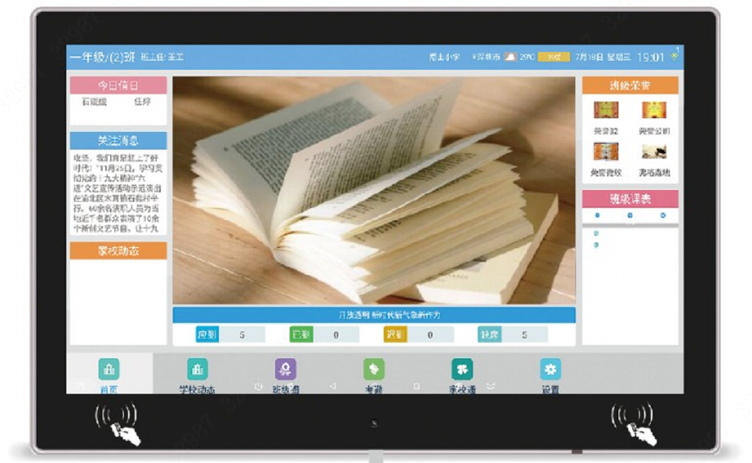 智能云数字班牌具有校园文化展示、家校互通、自主选课、教学考勤、课程发布、评先评优查询等基础模块,充分满足高考制度改革后“走班制”的教学方式,为师生提供新颖的师生交流方式及服务平台,提高学校管理、服务水平,提升学校的社会竞争力和知名度。